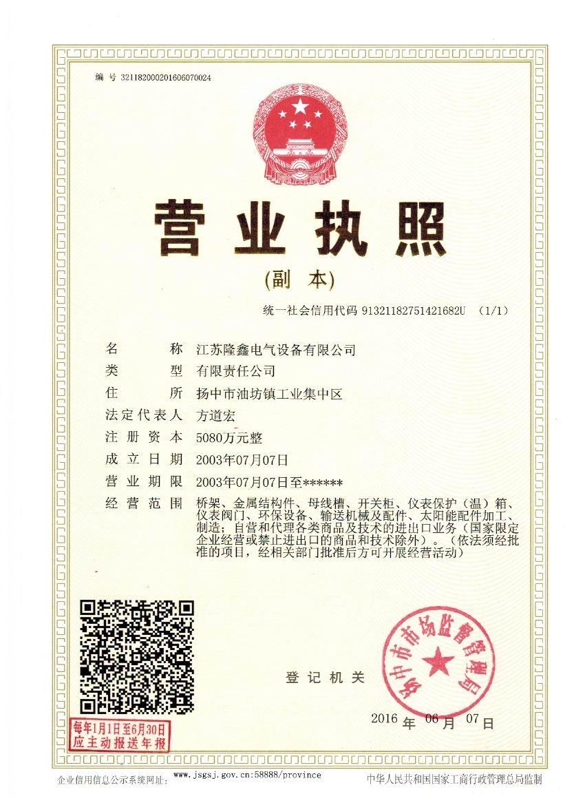 江蘇隆鑫電氣設(shè)備有限公司(原揚中市隆鑫電器設(shè)備有限公司)位于風(fēng)景秀麗的江南古城 ---- 鎮(zhèn)江東部揚子江畔,水陸交通便利。 本公司是中石化網(wǎng)絡(luò)成員企業(yè),是揚中橋架企業(yè),工業(yè)管道閥門、儀表管配件、母線槽、匯線橋架、玻璃鋼制品的專業(yè)生產(chǎn)廠家。 我公司以經(jīng)營以管理為保證、以科技進步為動力,使產(chǎn)品的市場占有率不斷提高,公司正持續(xù)、穩(wěn)步、健康地向前發(fā)展,秉循“服務(wù)用戶、奉獻社會”的經(jīng)營觀念,本公司生產(chǎn)的儀表管件及閥門系列產(chǎn)品、母線槽、電纜橋架幾乎覆蓋全國31個省、市、自治區(qū)的化工、冶金、交通、輕紡、建筑、港口...
